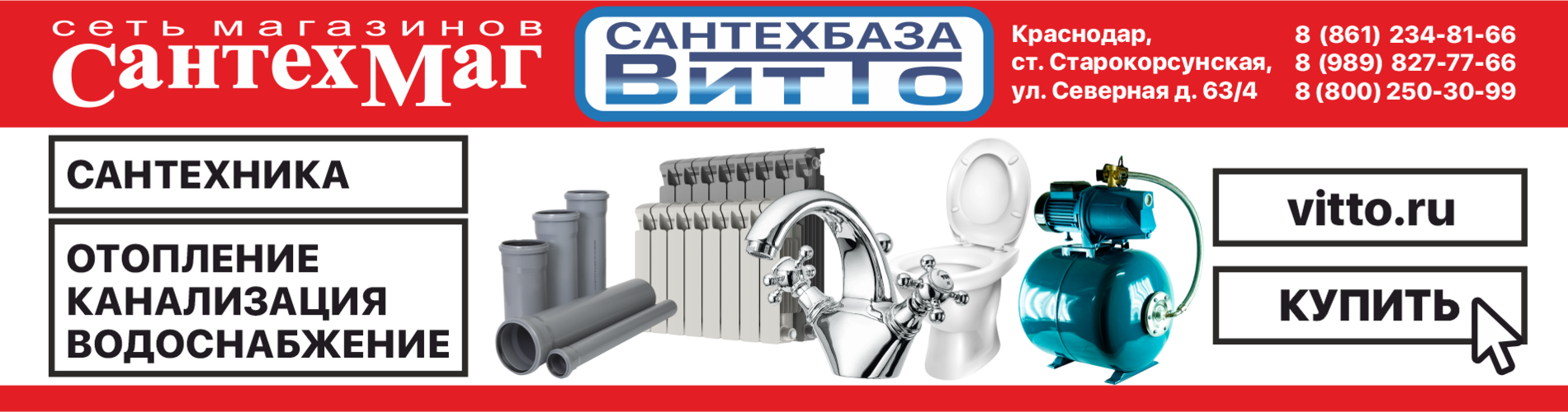 Позвоните или напишите нам прямо сейчас, чтобы задать все интересующие вопросы и купить сантехнику в Краснодаре и Краснодарском крае – качественную, с гарантией и доставкой. Заказ на продукцию вы можете сделать прямо на этом сайте, по телефону или лично посетив наш офис.