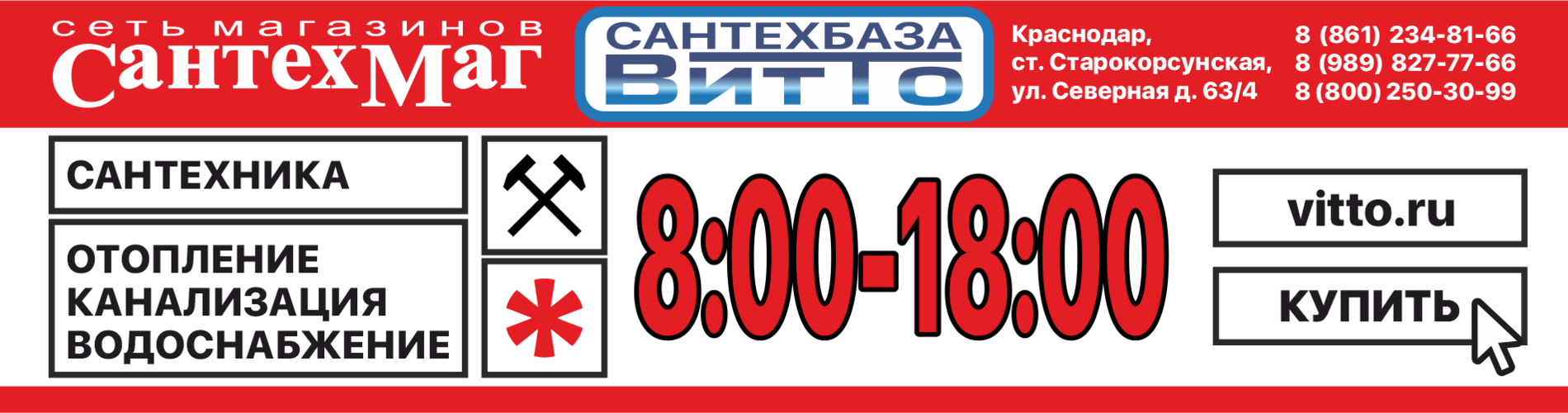 Телефон:8 (861) 234-81-66 Магазин: пн-сб 8:00-18:00 , +7 (989) 827-77-66 Whatsapp, Telegram